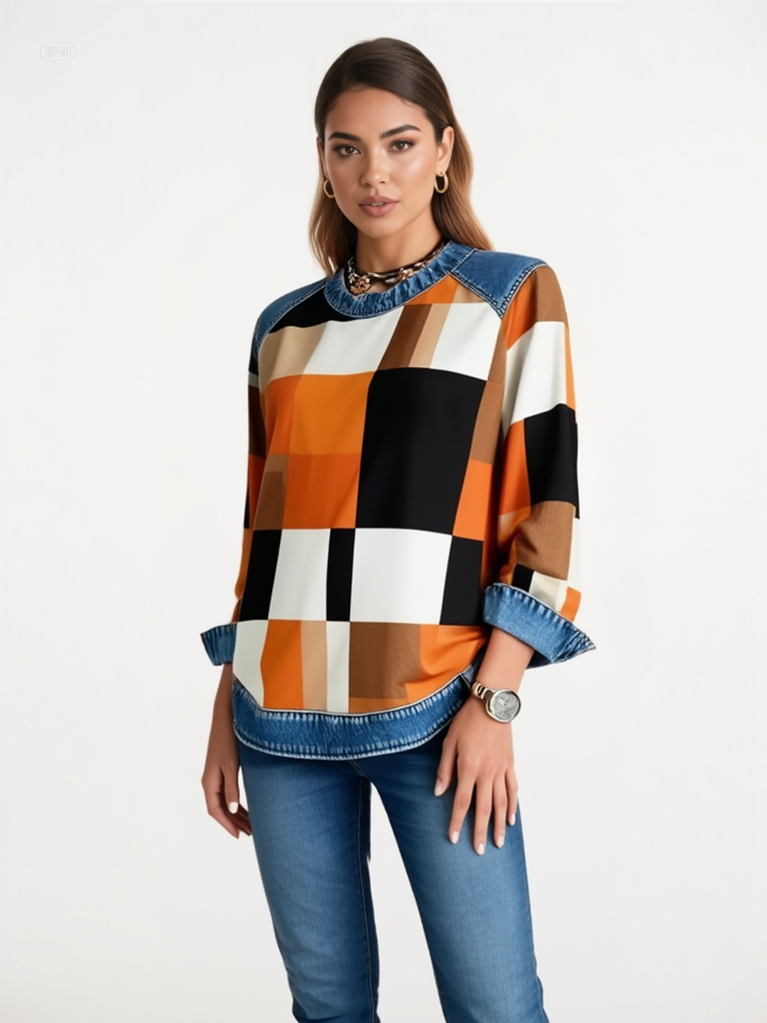 La Sudadera Cuadros Contrastados redefine el estilo cotidiano con una fusión perfecta entre comodidad y diseño moderno. Su estampado de cuadros en tonos cálidos se equilibra con los acabados en mezclilla, creando un look audaz y contemporáneo que refleja confianza y personalidad.
